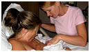 Kirstine fortæller om fødslen af hendes tvillinger Simon og Karen.