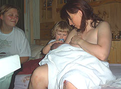 Jeg er den stolte mor til 2 dejlige børn. Min dejlige datter Linda på 2 år, og min dejlige søn Alexander på 2½ uge. Linda er født i Haag i Holland, og der havde jeg egentlig planlagt hjemmefødsel, men men men... Hun ville ikke ud, og derfor måtte jeg sættes igang på hospitalet. Jeg blev indlagt og måtte ikke komme i fødekar, som jeg meget gerne ville.