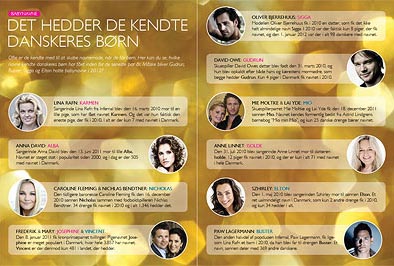 Kendte danskeres babynavne Her kan du se, hvilke navne kendte danskere har givet deres børn inden for de seneste par år.
